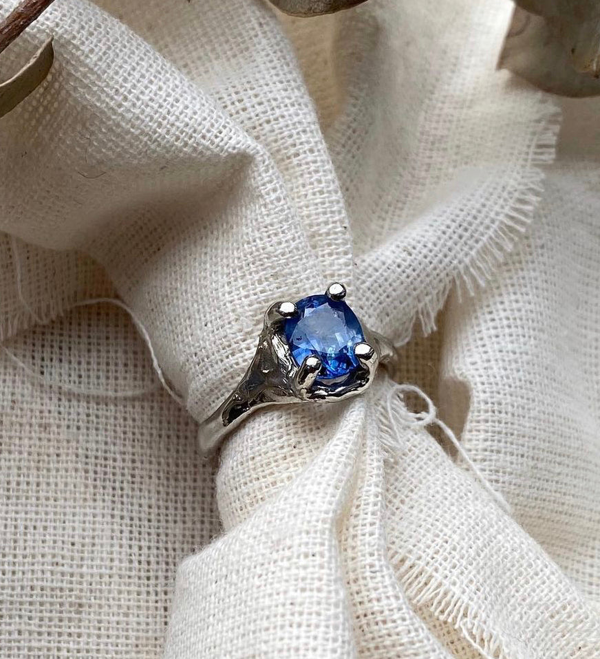 A platinum ring made with a customers Sri Lankan sapphire.