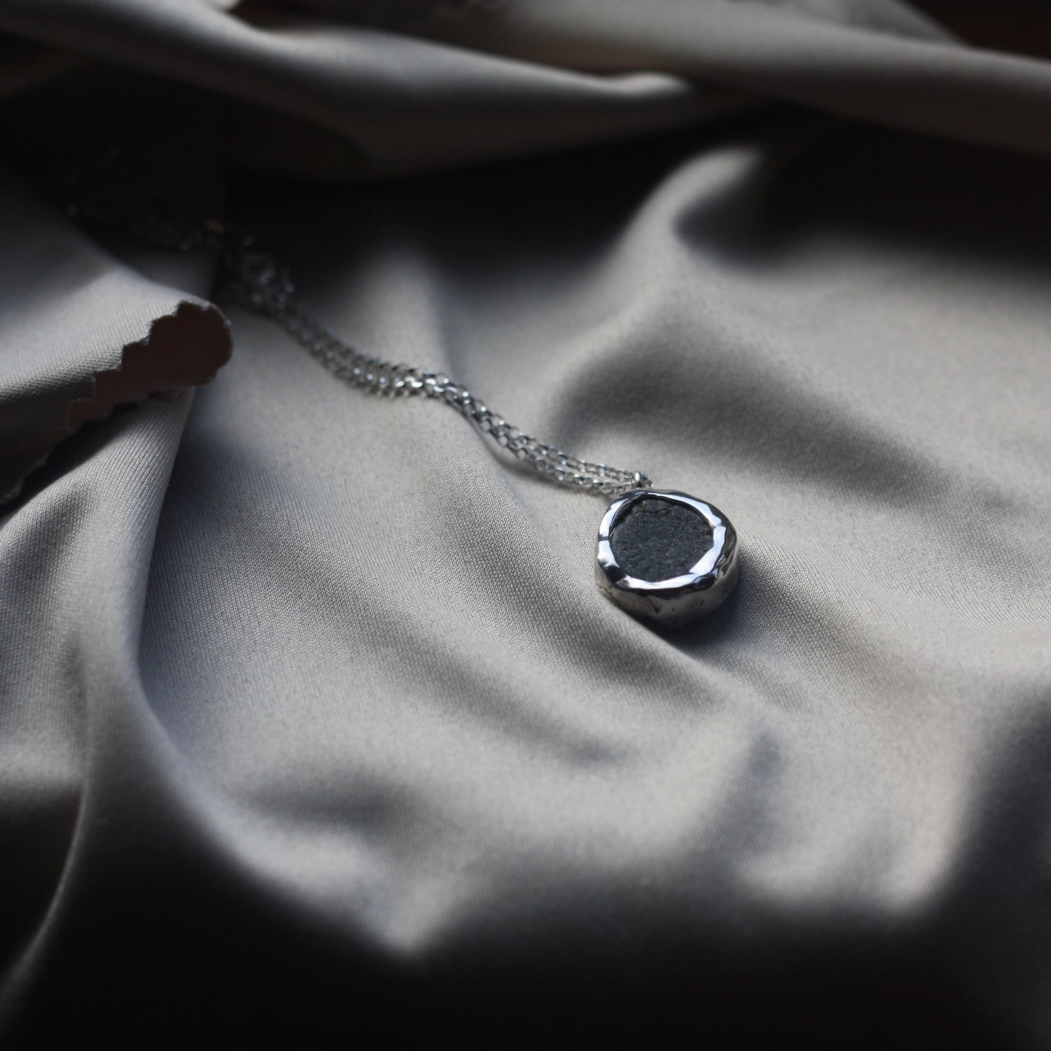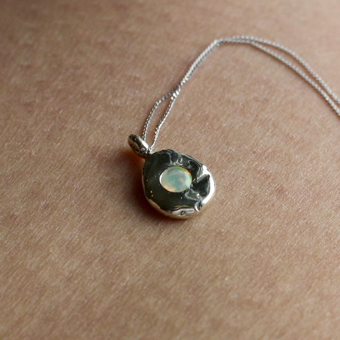 A sterling silver necklace made to encase a customers precious fossil.